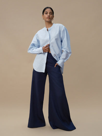ELIZABETH - Sky Linen Blouse